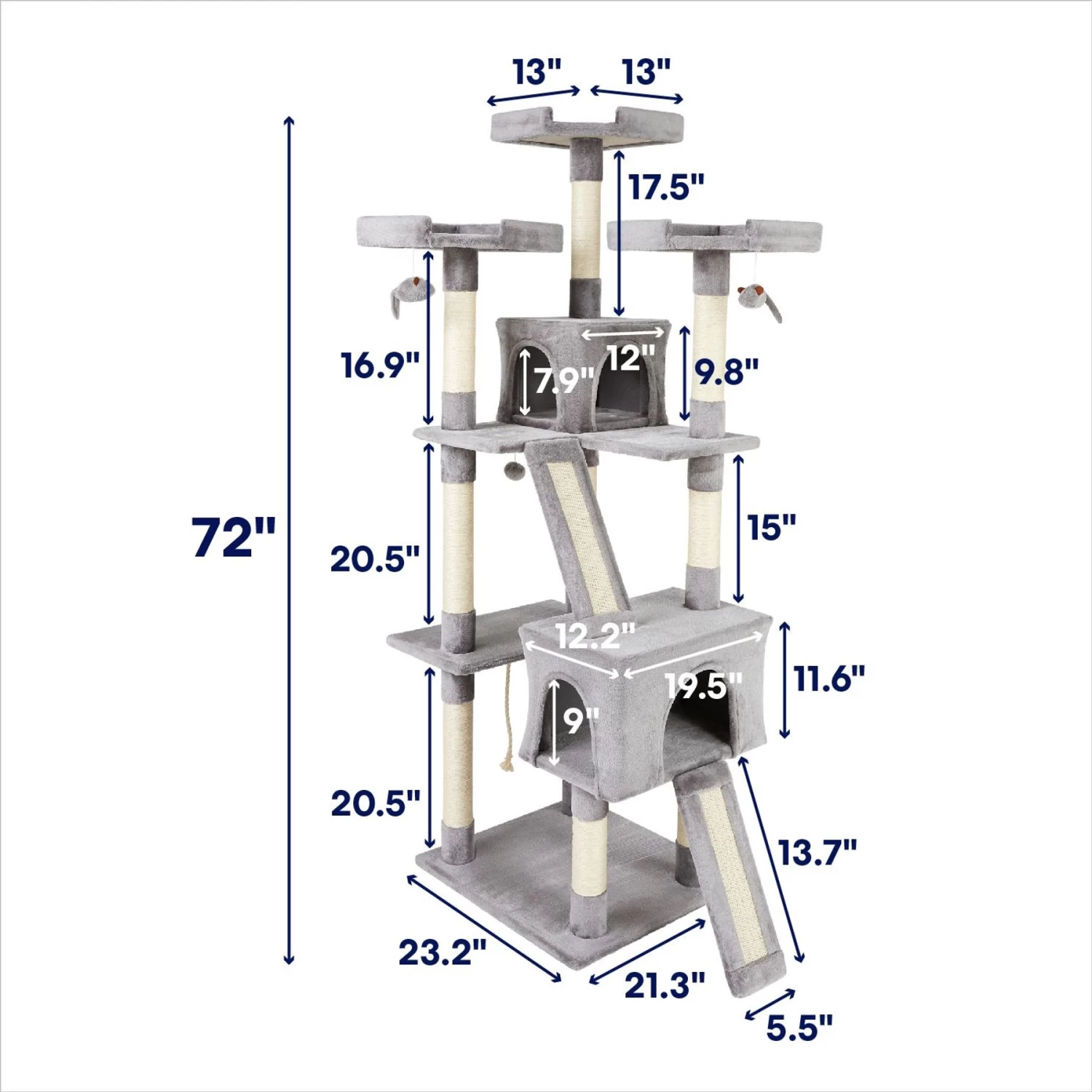 Frisco 73-in Cat Tree With Hammock, Condo, Lounge Basket, Top Perch & Bed