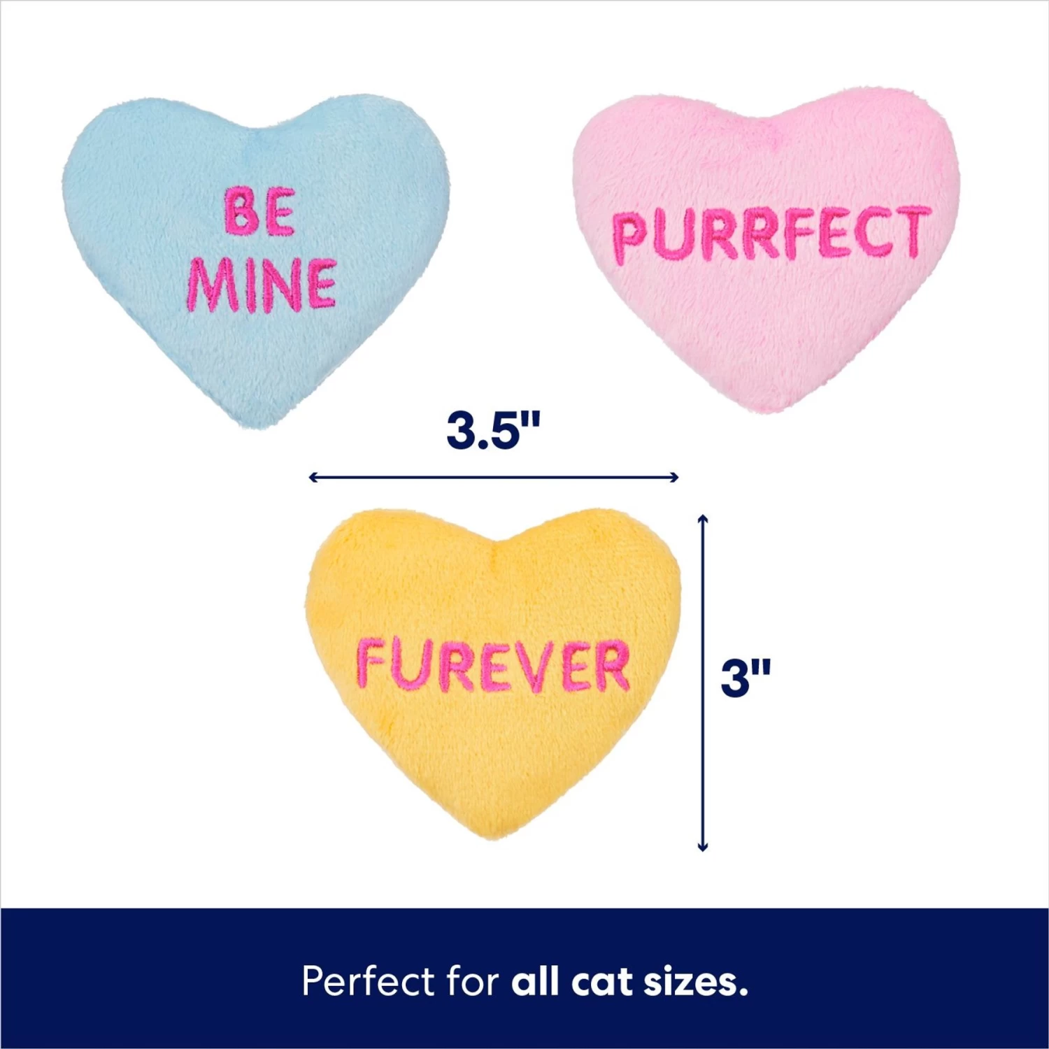 - Set of three Valentine’s Day cat toys is perfect for celebrating your true fur love.