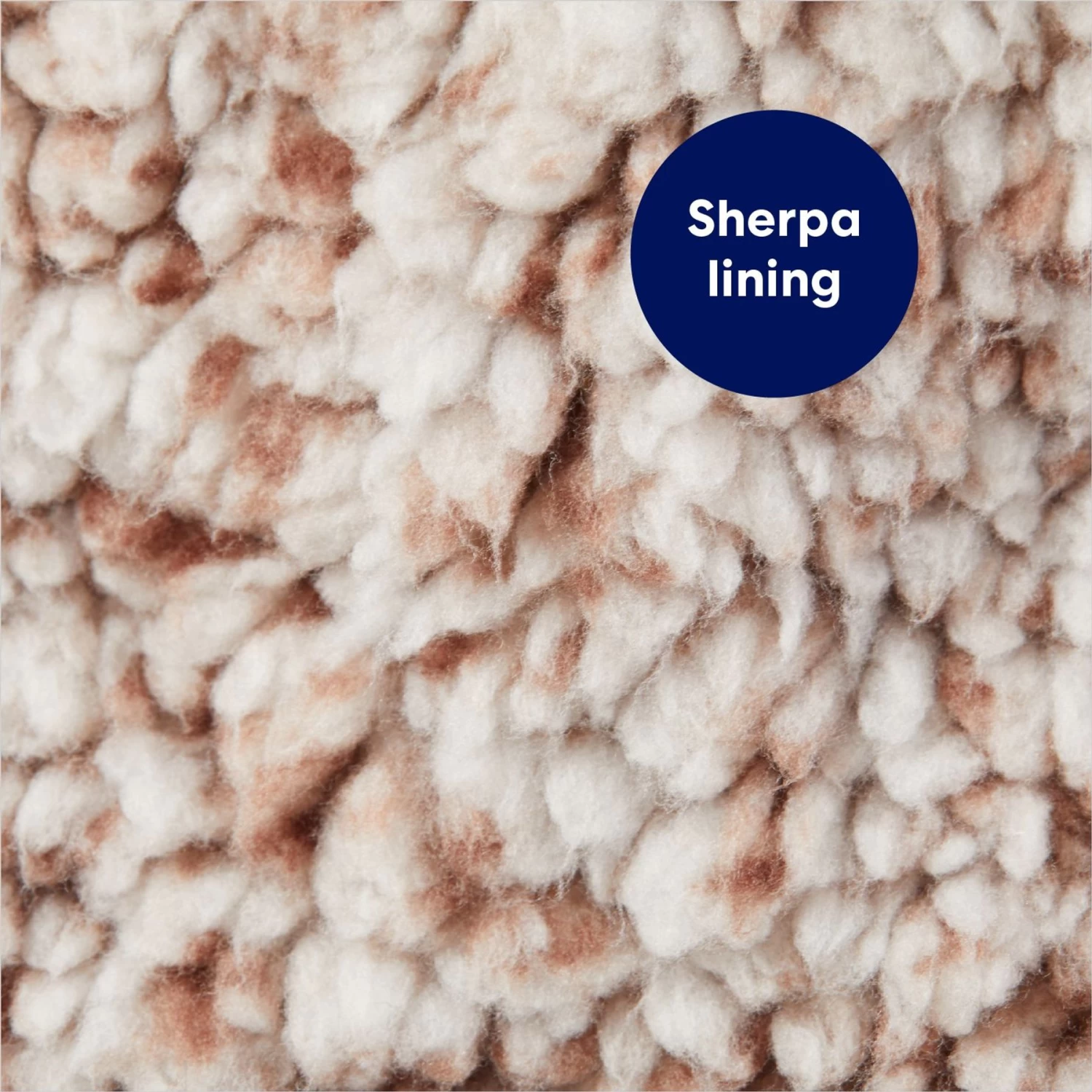 - This heavyweight quilted parka is lined with soft, speckled, sherpa-accented pockets and a hood with faux-fur trim.