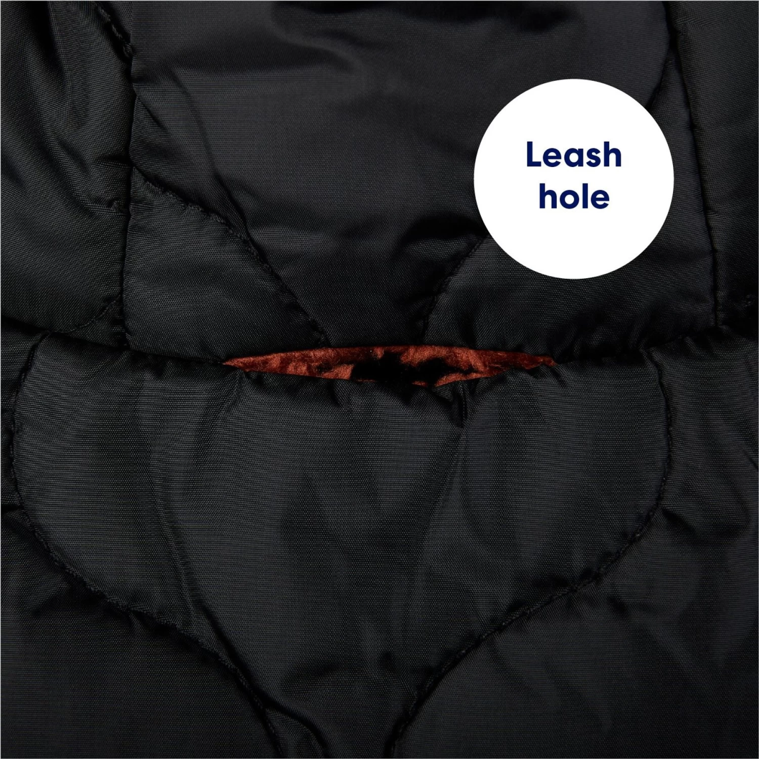 - A quilted puffer with contrast-colored sherpa lining, three accent pockets on front, and sleek style with several features will keep you pet protected from the chill.