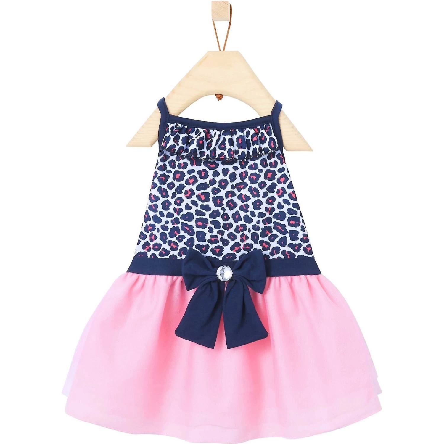 - Leopard print with tulle skirt plus a bow featuring a faux gem accent for style that stands out.