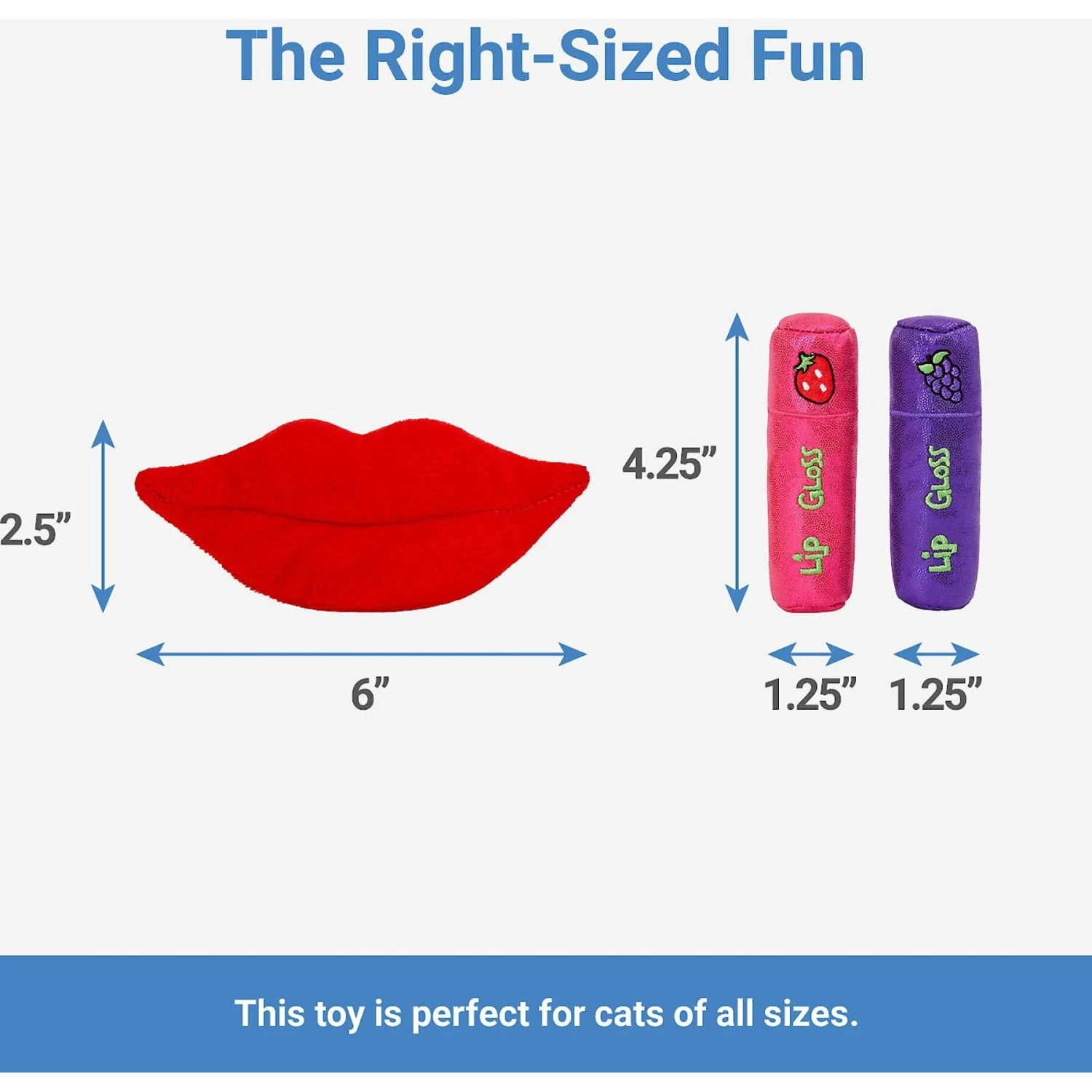 - Super fun lip gloss and lips cat toys keep your feline at the height of throwback fashionable fun.