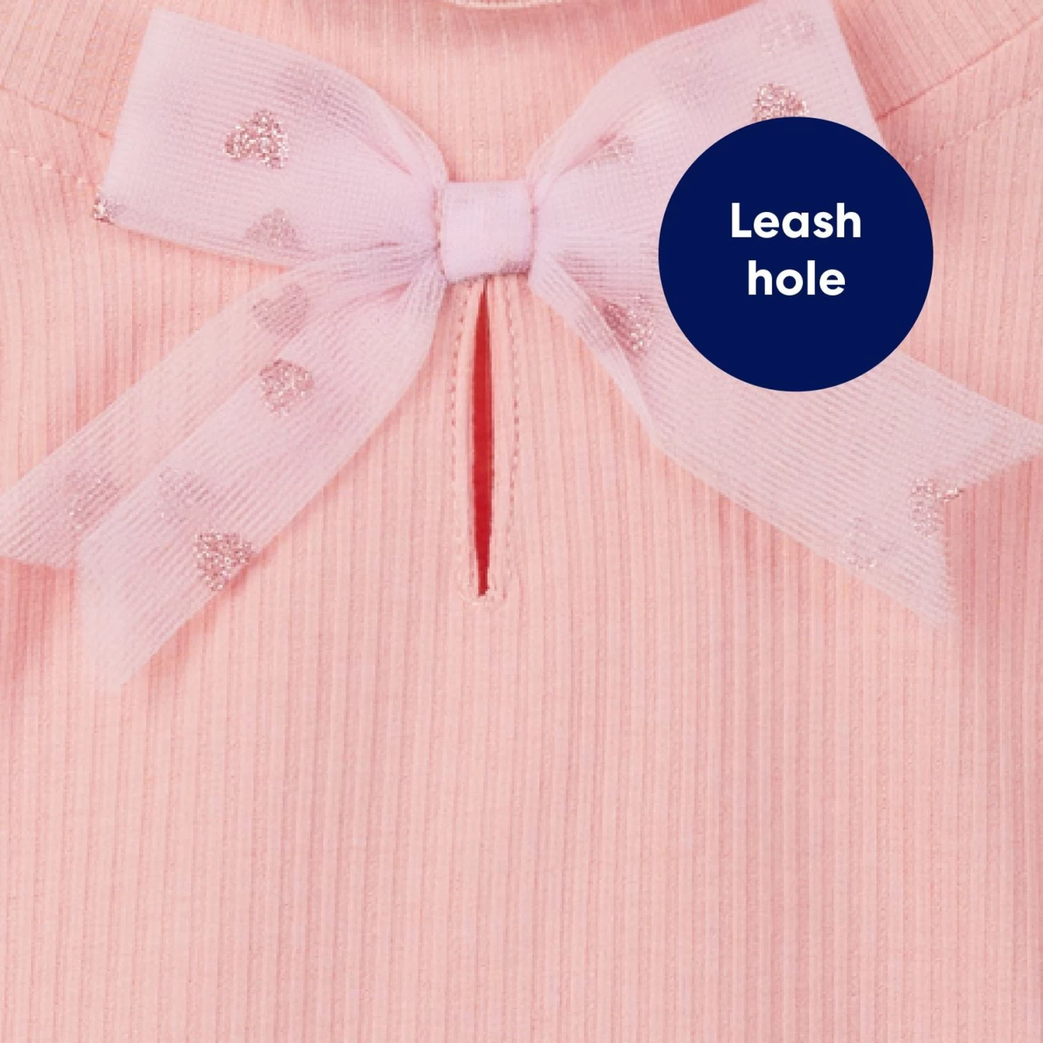 - Let your pet show their lovable nature with this dainty dress featuring a pink tulle skirt with an allover print of glittery red hearts and matching heart-patterned tulle bow at the collar.