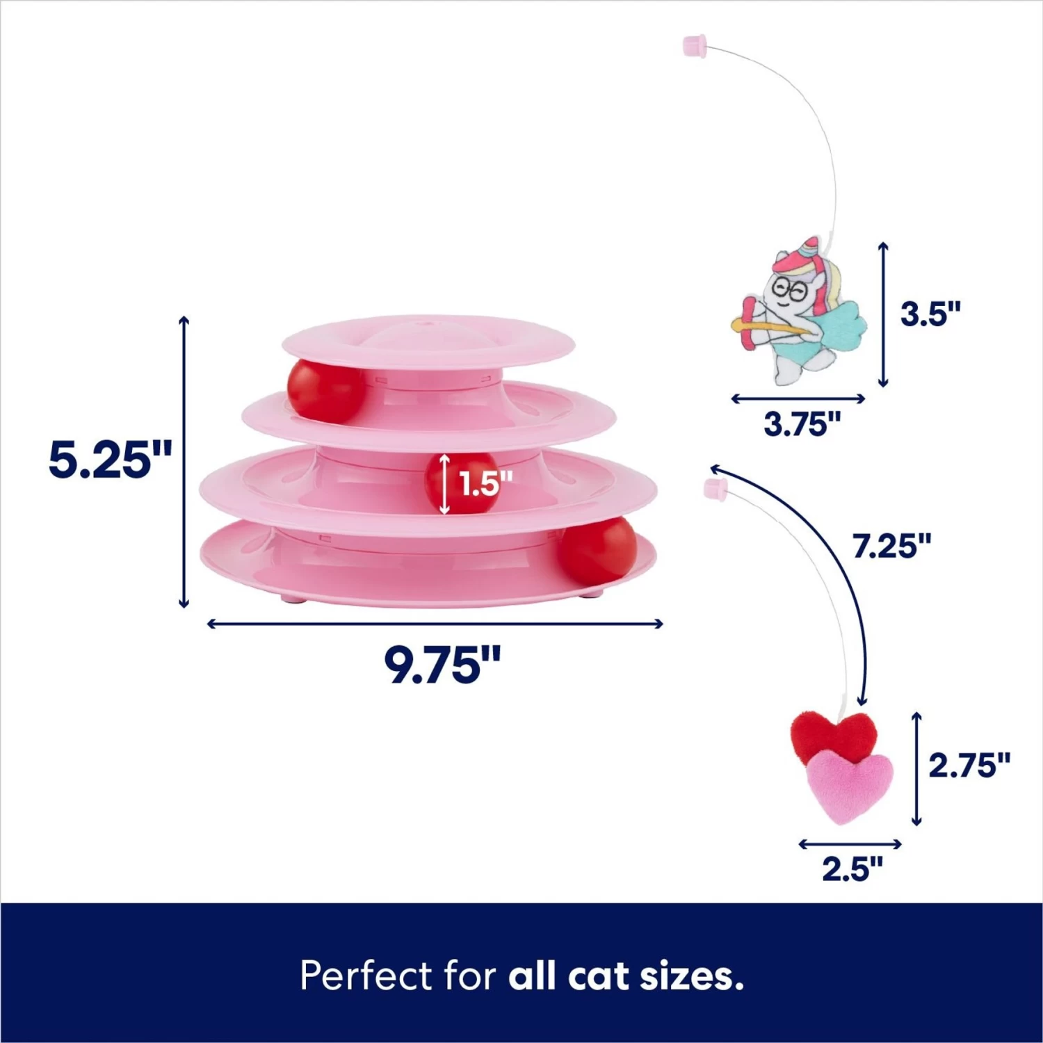 - The spinning action and sound of the rolling balls, along with the dangling unicorn or heart toy on top keep your kitty (or kitties) engaged, providing mental stimulation and exercise.
